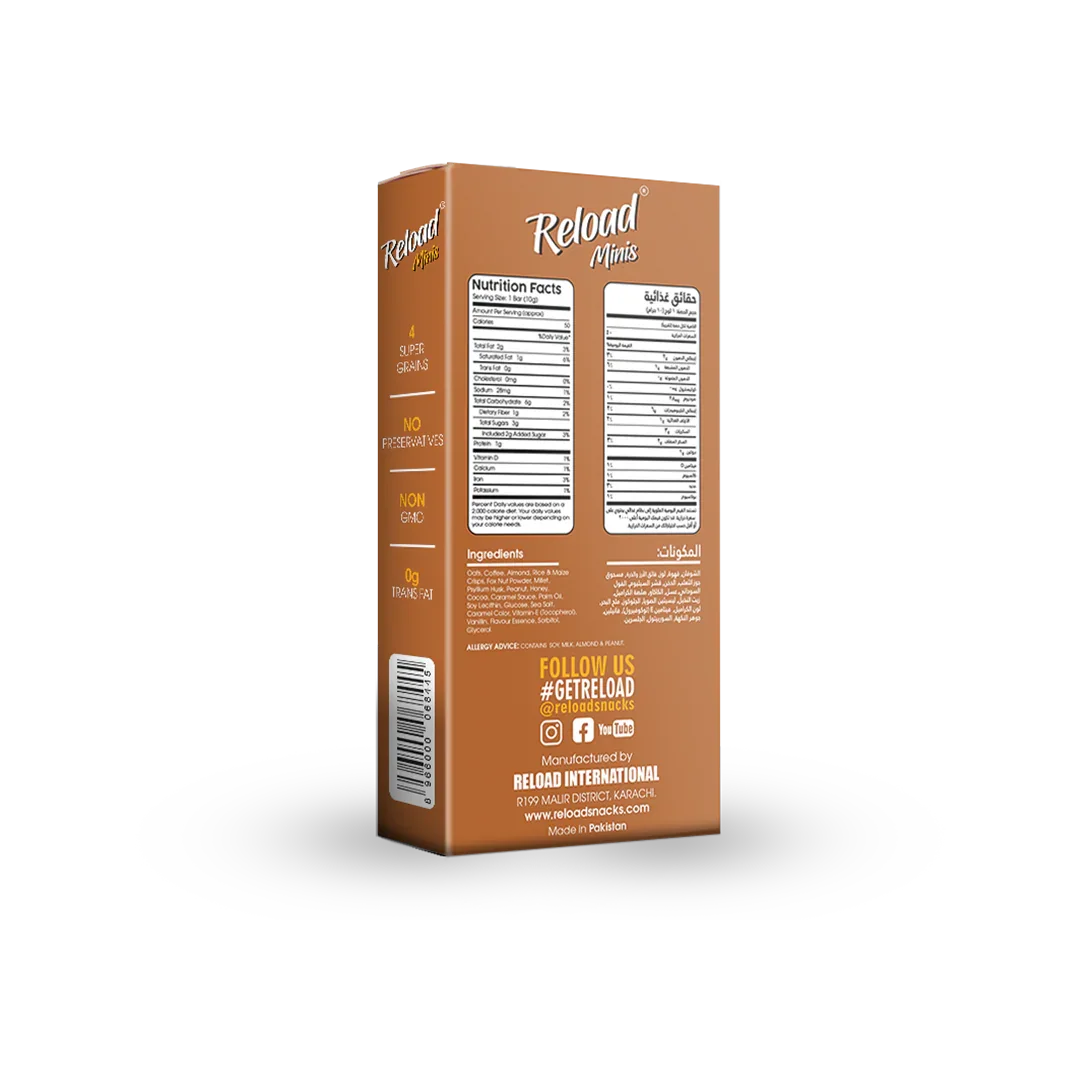 Reload Granola Mini is a healthy snack containing Fiber from Oats and Protein from roasted Nuts, giving you a perfect snack to stay in shape and enjoy a healthy lifestyle.