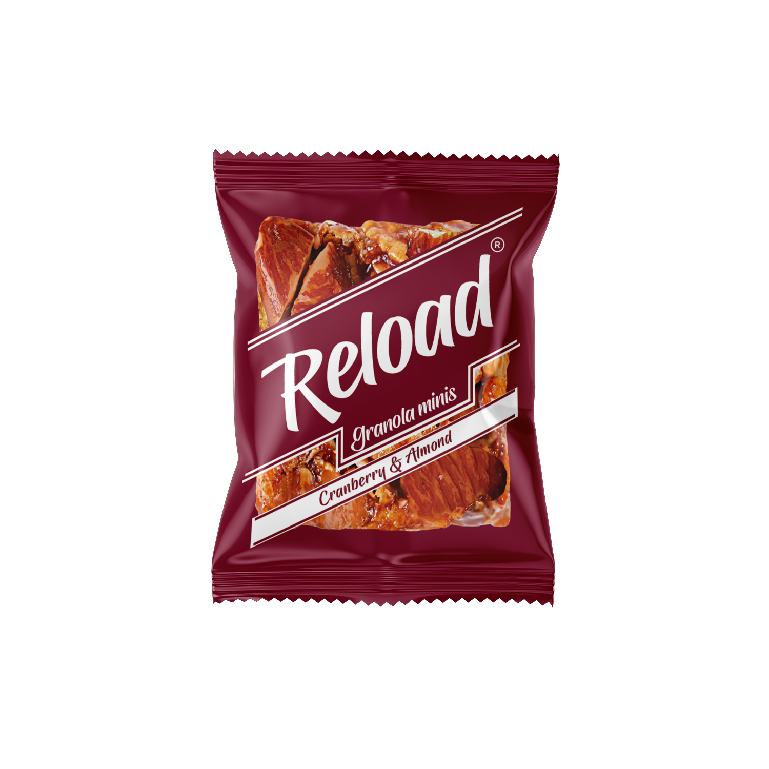 Reload Granola Mini is a healthy snack containing Fiber from Oats and Protein from roasted Nuts, giving you a perfect snack to stay in shape and enjoy a healthy lifestyle.