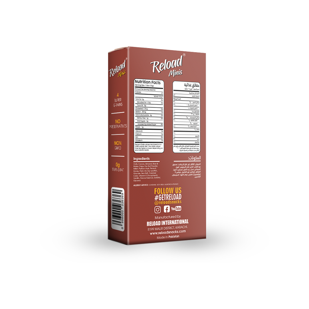 Reload Granola Minis should be consumed as part of a balanced diet. Store in a cool, dry place away from direct sunlight.